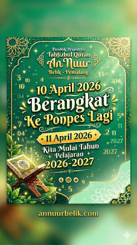 Tahun Pelajaran 2026/2027 Masehi atau 1447/1448 Hijriyah Ponpes Tahfizhul Quran An Nuur akan dimulai pada hari Jumat 10 April 2026